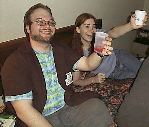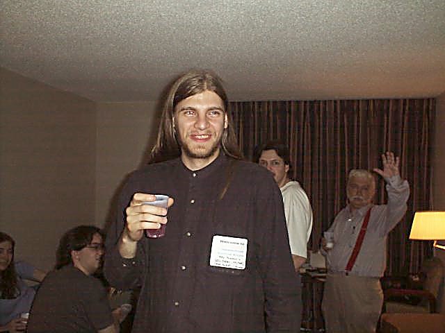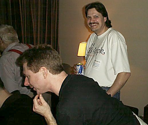 Eric, our host and bartender, with Jim Butterfield, party animal, in the background.