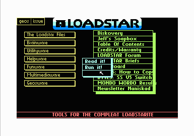 issue of the LoadStar disk magazine from the comfort of GEOS.