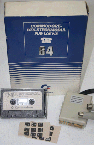 Model : BTX-Steckmodul Fur Loewe Connection : BTX Proprietary line Interface : C64/C128 Expansion port Speed : ? Notes : "Bildschirmtext" service only